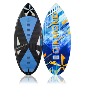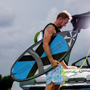The Phase Five Diamond Turbo LTD Wakesurfer is built with a textured deck resulting in an extremely noticeable weight reduction for even more performance. You will notice the ChromaCarbon beautifully laminated into the deck. The bottom is built with Innegra for optimal speed and strength. The ChromaCarbon series are some of the best looking, high performing wakesurf boards produced by Phase Five to date. Features a three fin setup installed with our 2” Skim Fin in the center accompanied by 1” Fakie Skim fins on the outside.